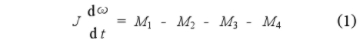 式中J一葉輪的慣性矩;dω/dt一葉輪的旋轉(zhuǎn)加速度;M1一流體驅(qū)動力矩;M2一黏性阻力距;M3一軸承摩擦阻力距;M4一磁阻力距。