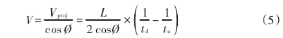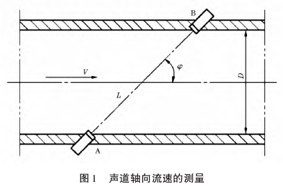式中:tu為超聲波在流體中逆流(由B到A)傳播的時間,s;td為超聲波在流體中順流(由A到B)傳播的時間,s;L為聲道長度,m;V為流體的軸向線平均流速,m/s;0為聲道角,(°)。