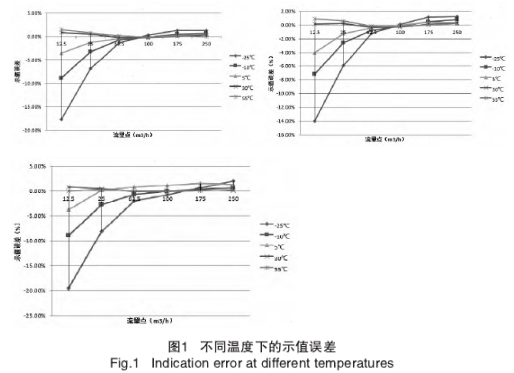 2)同臺流量計在相同的流量點下,隨著溫度越低,流量計量示值誤差負偏就越大;溫度越高,流量計示值誤差正偏就越大。