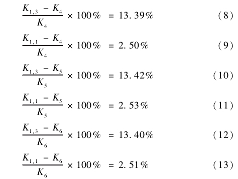 計算結果表明:1#電磁流量計在聚合物溶液中得到的儀器常數K4、K5、K6,與1#電磁流量計在自來水中得到的包括層流和紊流兩種流態(tài)的儀器常數K1.3,的最大偏差為13.42%,與1#電磁流量計在自來水中得到的層流流態(tài)的儀器常數K1.1的最大偏差為2.53%。