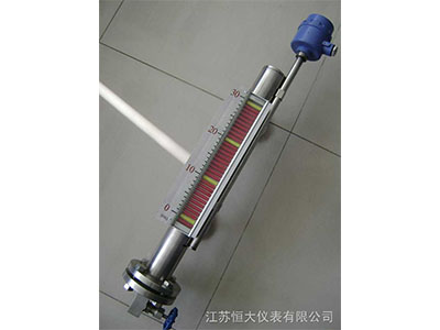 由玻璃板及液位計主體構成的液體通路是經接收用法蘭或錐管螺紋與被測容器銜接構成連通器,透過玻璃板觀察到的液面與容器內的液面相同即液位高度。磁翻板液位計是在板管式液位計基礎上依照國外最新技術發展起來的內浮子式液位計,由于其承壓零件使用不銹鋼資料,在結構上減少了密封結合面,故外表的安全性、可靠性得到提高。液位顯現明晰奪目。