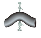 ●差壓變送器應安裝在彎管傳感器的下方,使引壓管中的氣體排放回到管道中。如果現場條件是差壓變送器必須安裝在彎管傳感器上方,則要求與根閥連接的引壓管應先向下,然后緩變轉彎向上,與差壓變送器連接。